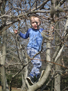 Landon: (climbing on the back of the couch and jumping onto the cushion) See? Landon didn't jump, my bum jumped.